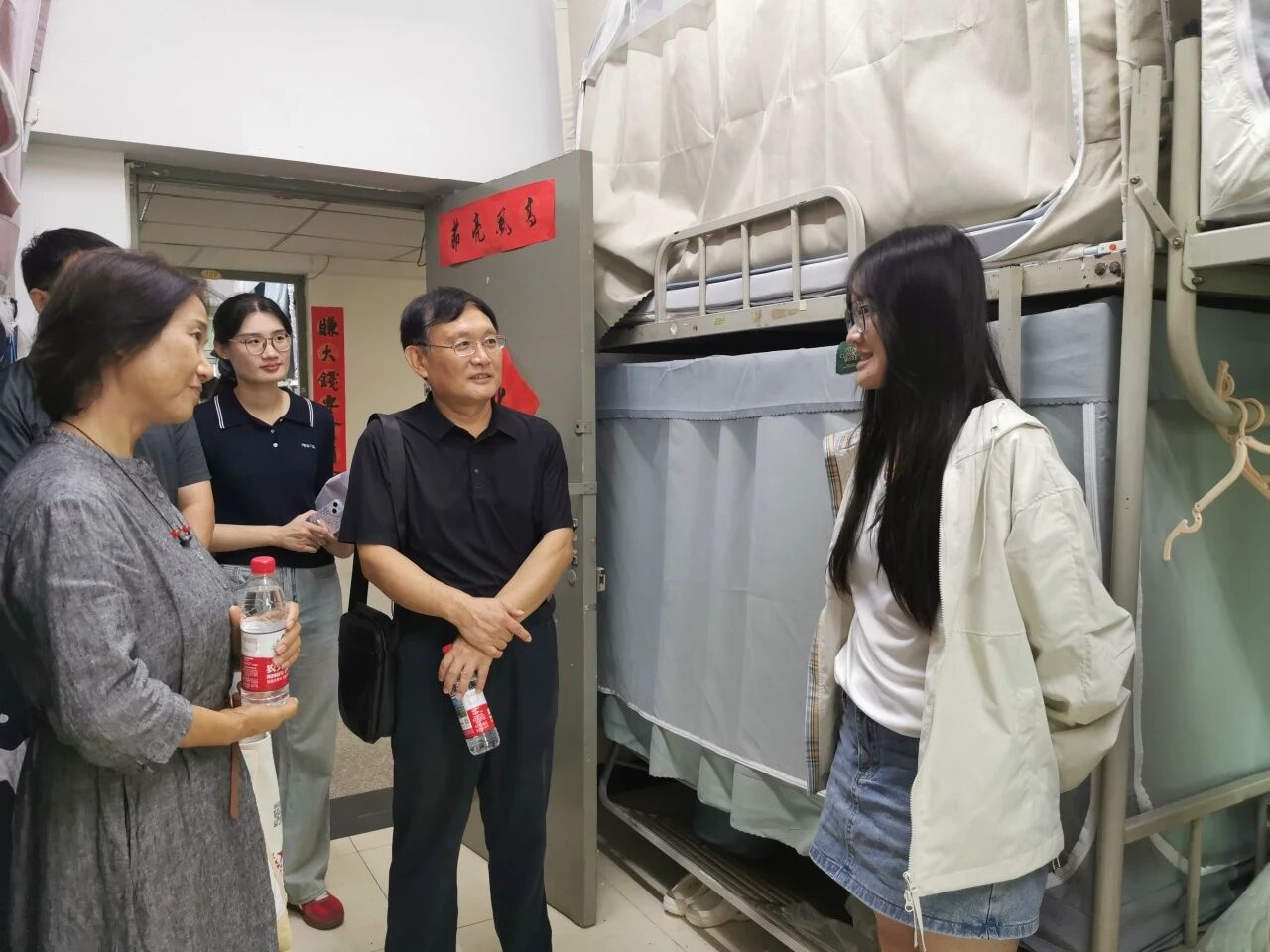 领导亲临,深切关怀鼓舞人心。迎新期间,学院党委书记张露红、院长张燕京等领导班子成员,亲临报到现场和新生宿舍,亲切慰问工作人员和志愿者,并与新生及家长进行深入交流,勉励新生尽快融入学院大家庭,在学院学术沃土中茁壮成长。领导的亲切关怀与殷切期望,为新生们注入了强大的精神动力。
