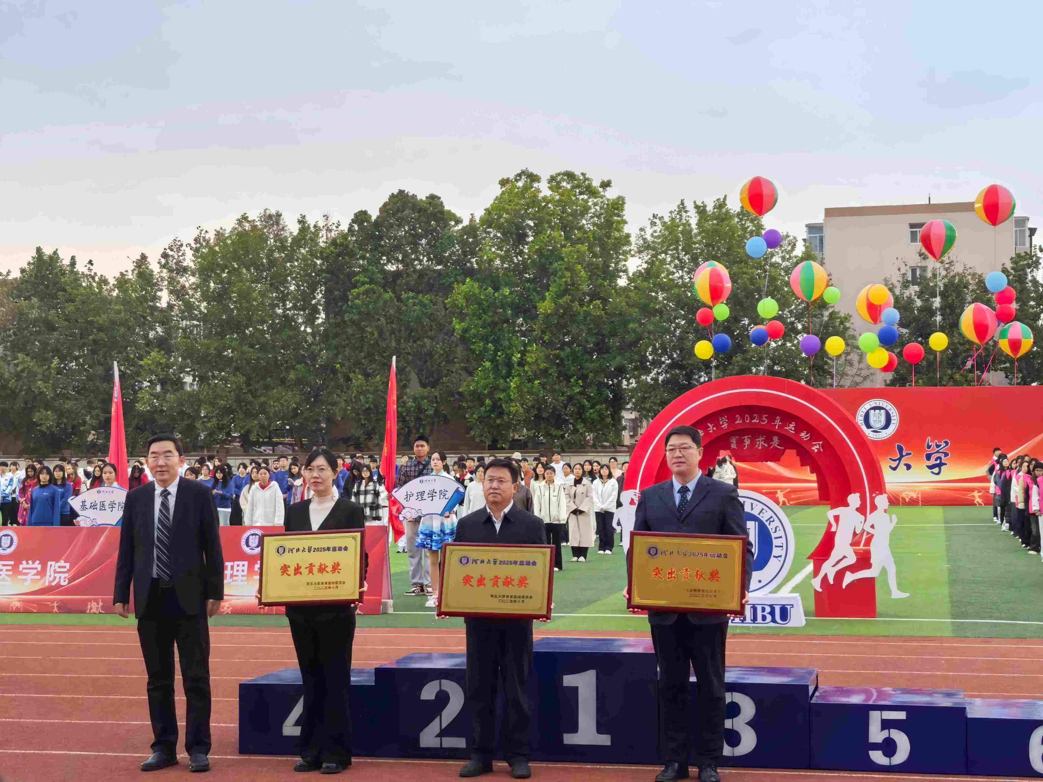 10月17日至18日,河北大学2025年运动会在五四路校区体育中心举行。开幕式上,学院学子以一场融合传统与现代、力与美的团体操盛宴震撼全场;运动会中,学院凭借严禁的组织能力、昂扬的精神风貌和文明的观赛氛围,荣获运动会“突出贡献奖”与“体育道德风尚奖”两项殊荣,成为赛场内外一道亮丽的风景线。