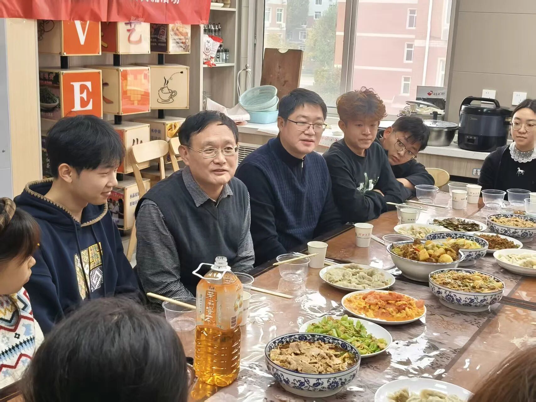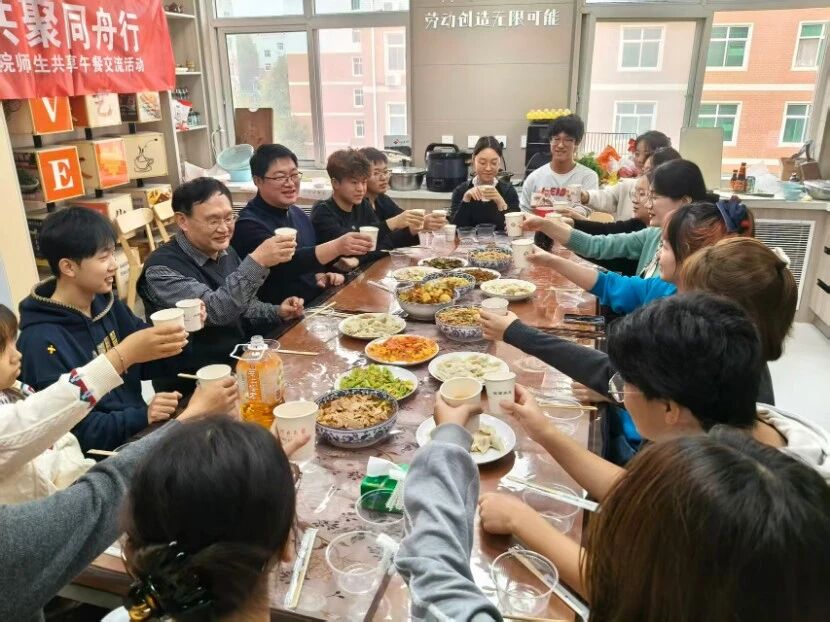 活动中,师生们一同清理食材、庖厨手作备料成肴,在劳动协作中体验动手乐趣,感受劳动教育的独特价值。餐叙环节,师生边吃边聊,就学业困惑、生涯规划、生活点滴等话题进行了深入而坦诚的交流。院长在交流中强调此次活动是学院推动“三全育人”、拉近师生物理与心理距离的重要举措育人既要在课堂上引导学生探索真理,更要在生活中倾听学生的心声,做学生的引路人、知心人、护航人。他希望通过这类常态化、生活化的交流,拉近师生关系增强学院合力,让育人工作更接地气、更具温度。