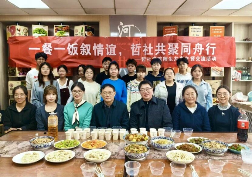 10月31日中午,哲学与社会学学院在七一路校区“河当家”共享厨房成功举办“一餐一饭叙情谊,哲社共聚同舟行”师生共享午餐交流活动学院院长张燕京,党委副书记王昭,专职辅导员尹清华、张惠娟及学生代表一起以食为媒,共赴一场充满烟火气的暖心之约