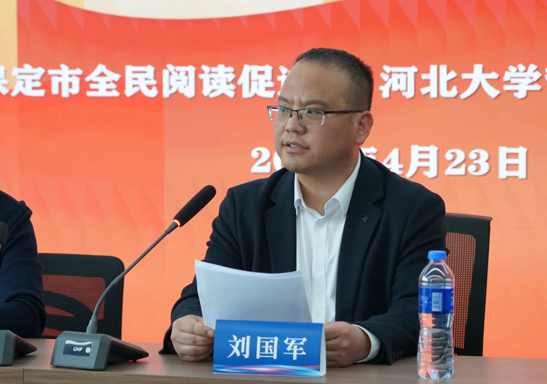保定市全民阅读促进会会长刘国军作主题讲话。他指出,随着全民阅读步入法治化发展新阶段,我市全面部署推进全民阅读“七进工程”。本次进校园活动作为全市系列活动首场启动仪式,意义重大、示范引领作用突出。他寄语广大青年学子,不负青春韶华,坚持博览群书、勤学善思,在阅读中汲取精神力量,在书香中感悟燕赵文脉,以阅读寻美河北、读懂家乡,把读书学习所得转化为成长成才、报国为民的奋进力量。